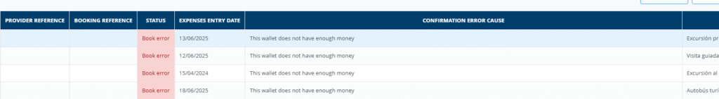 When placing a booking, you can receive error due to payment problems with the different providers. You will see the error messages from the bookings “confirmation error cause” column when filterin by any service in our back office DATA —>BOOKINGS