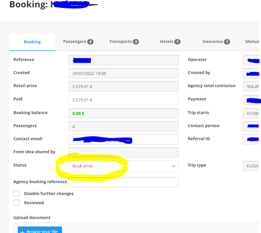 It is important that you keep updated your booking with the correct statuses, specially when you receive a book error. Failing not to update this will result that Travel Compositor will charge you full the fee if is not in status cancelled.