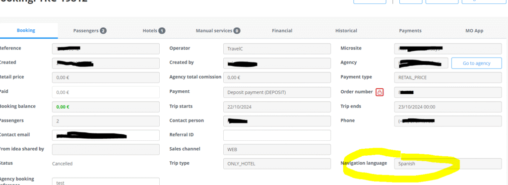The language you see in this box is the language that the user used to make this booking, is usefull to know in which language we shoud adress to the client.