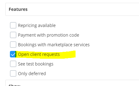 When you receive a client request from an active booking you receive a warning in the booking