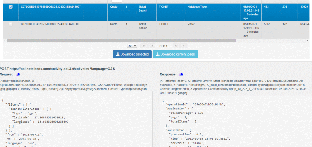 Aquí en la parte inferior verás las trazas de comunicación. Utilizando los filtros podrá ver los registros de un determinado proveedor haciendo clic en la línea deseada.