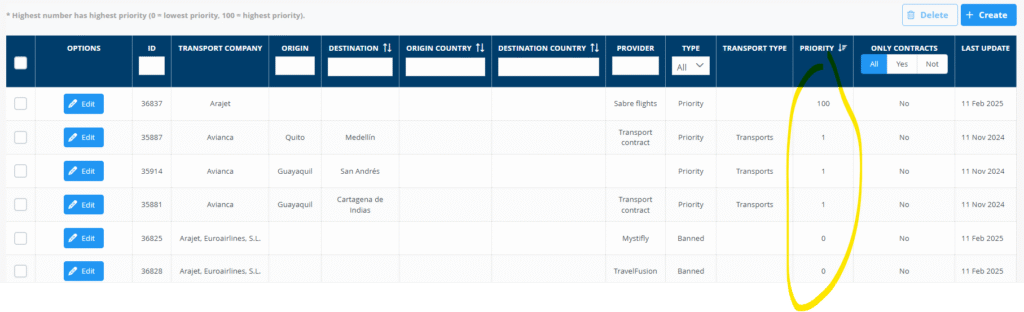Utilizando la herramienta PRIORIDAD DE TRANSPORTE en la sección de back office CONTENIDO WEB puede aplicar varios criterios para cambiar la prioridad normal de los transportes.